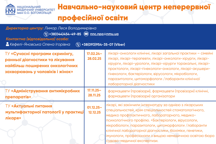 Післядипломна освіта та безперервний професійний розвиток медичних та фармацевтичних працівників