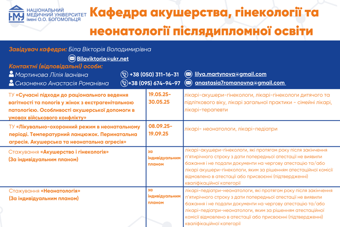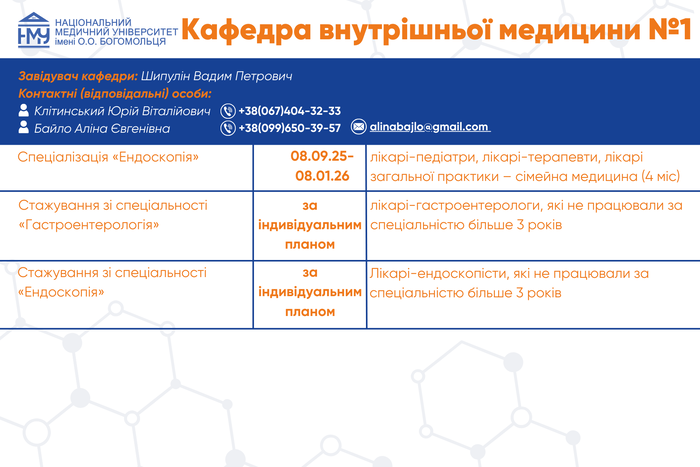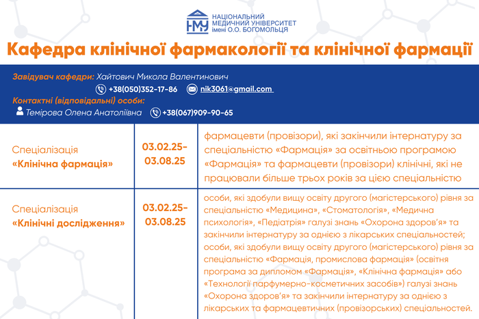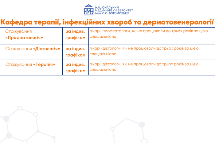Положення про порядок професійного медичного стажування на клінічних кафедрах та структурних підрозділах Університетської клініки Національного медичного університету імені О.О. Богомольця: https://drive.google.com/file/d/1ZV0Zr1LXhXmbOGOH62BFLlLJm6TYHSjV/view