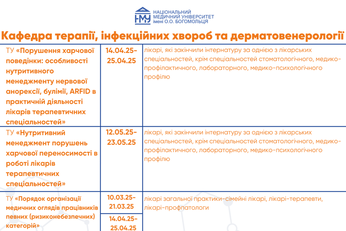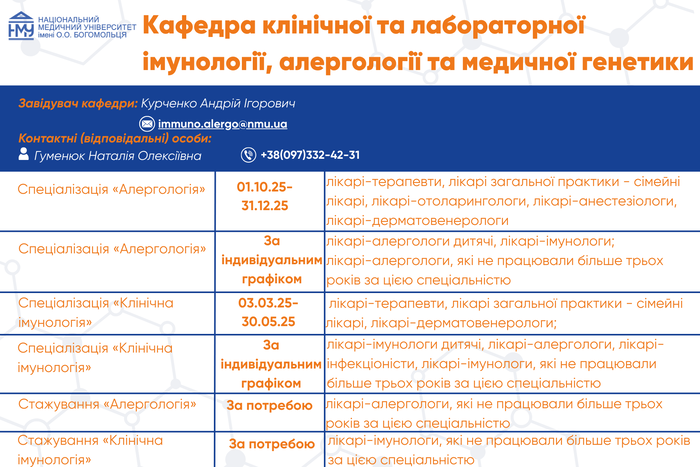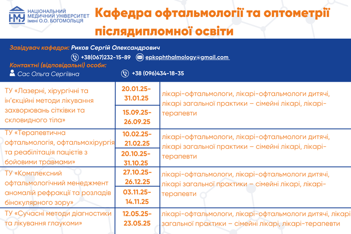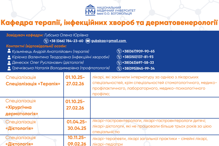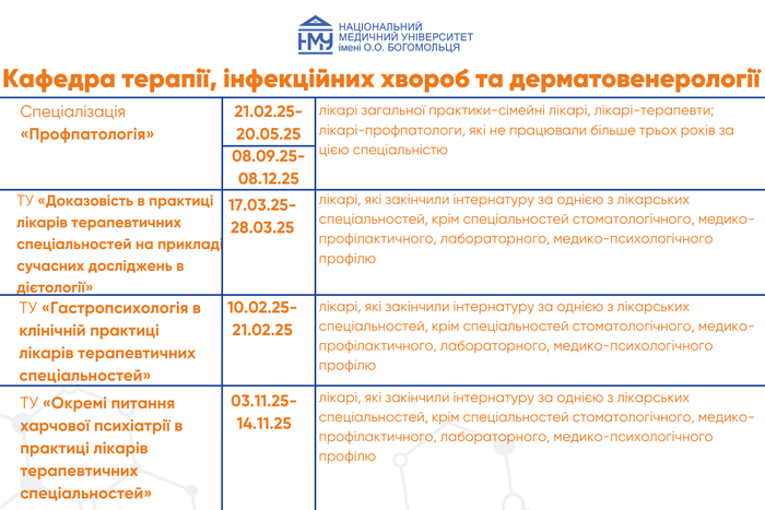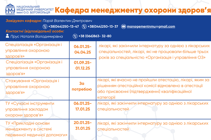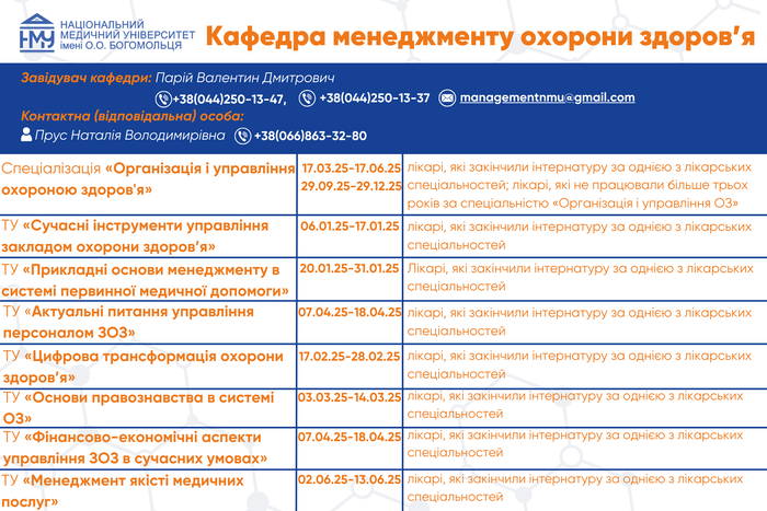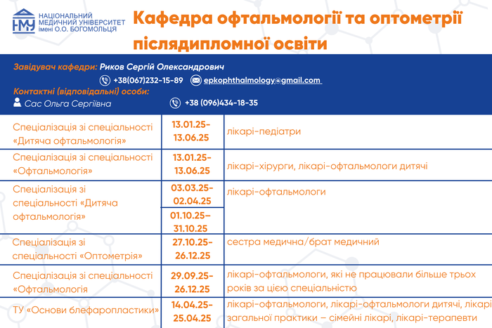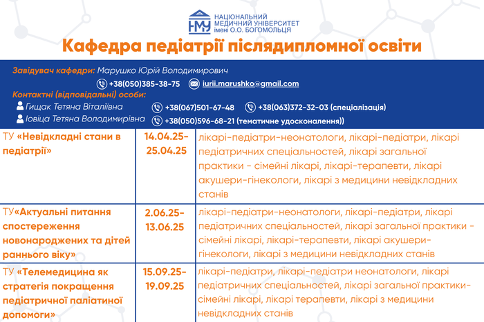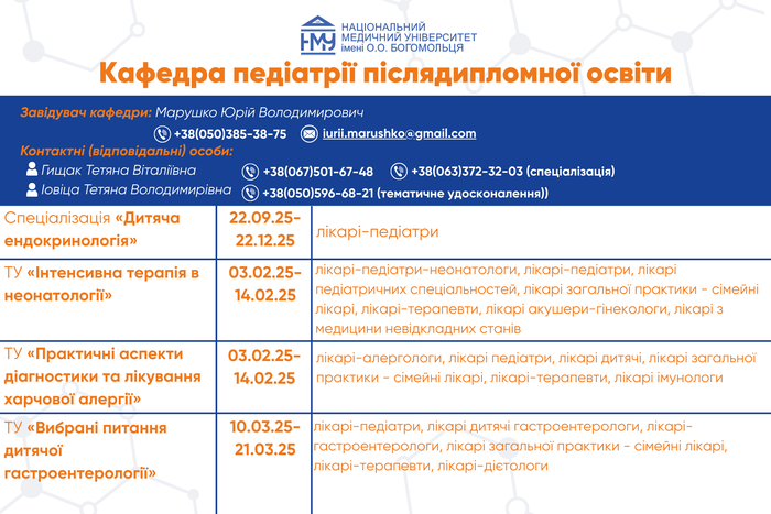 Наказ МОЗ України від 25 липня 2023р № 1347 «Про затвердження Переліку циклів спеціалізації та тематичного удосконалення за лікарськими та фармацевтичними (провізорськими) спеціальностями»: https://zakon.rada.gov.ua/laws/show/z1362-23#Text