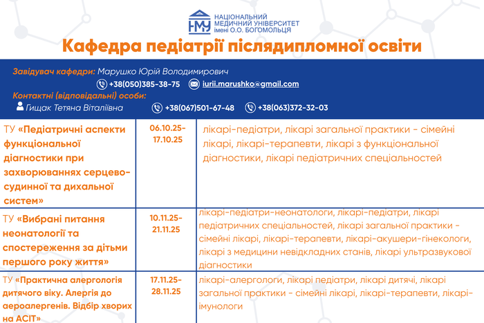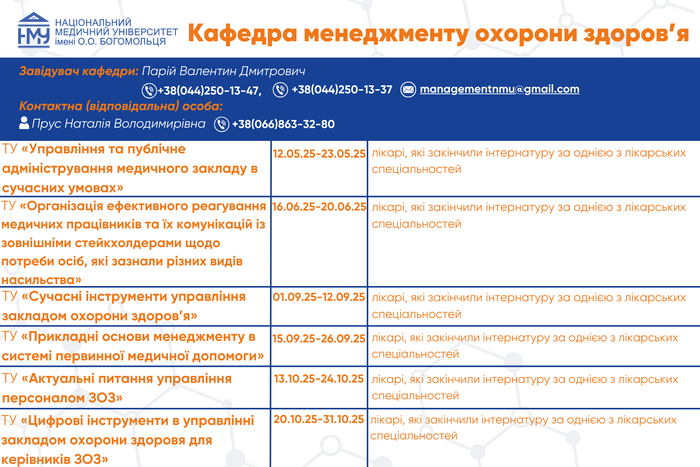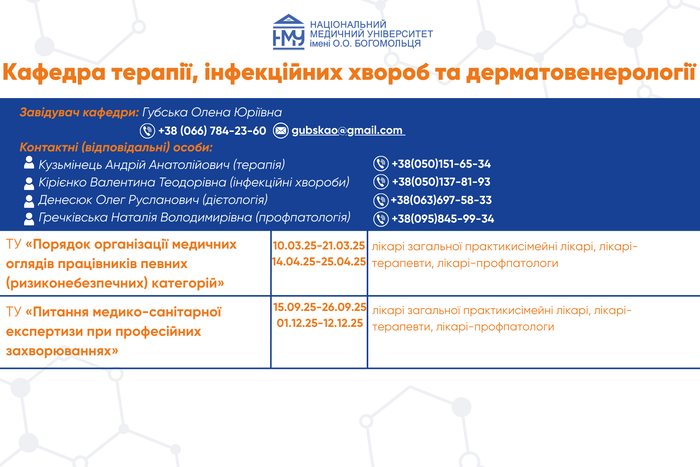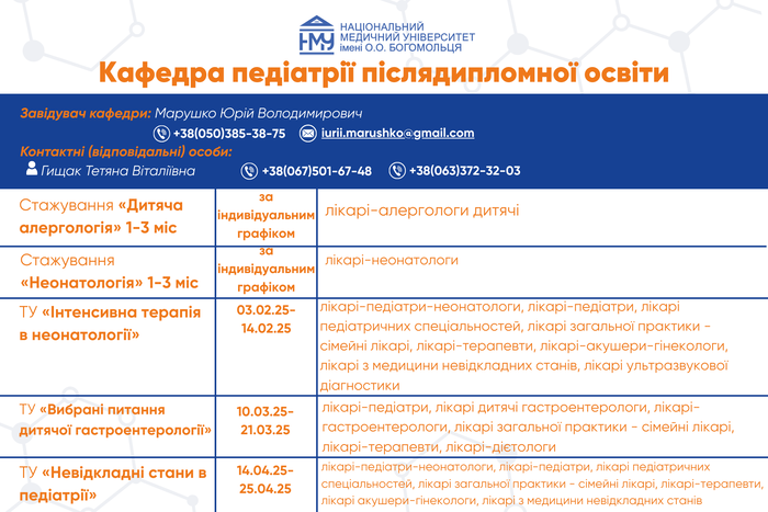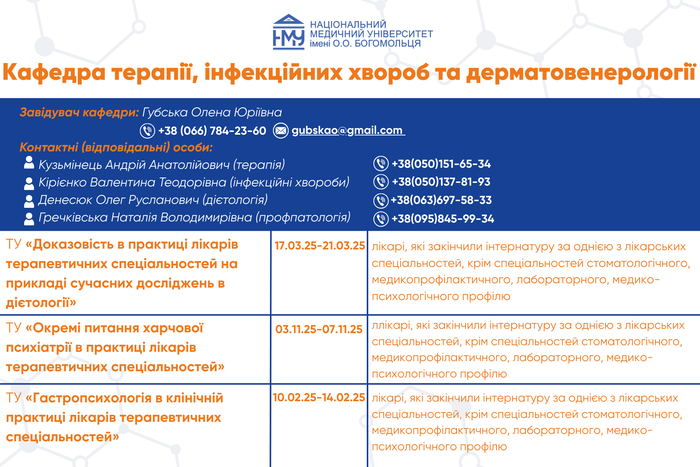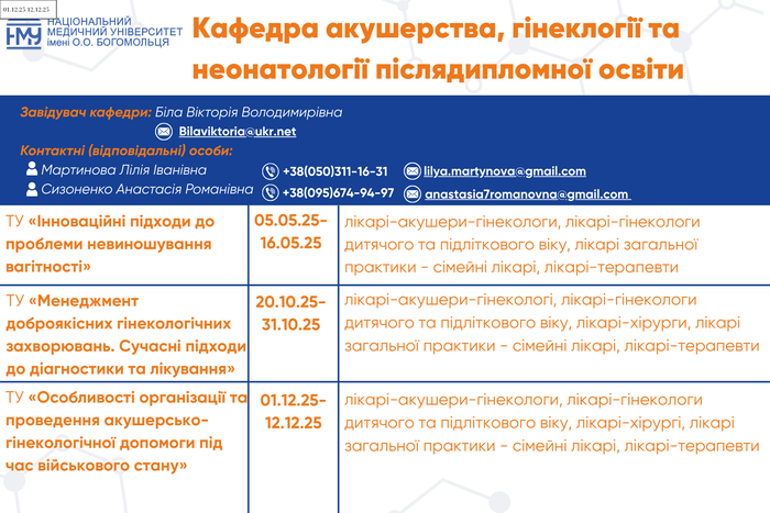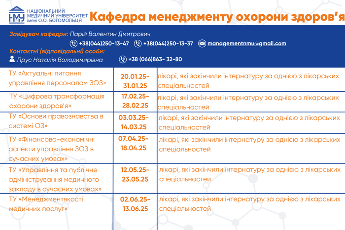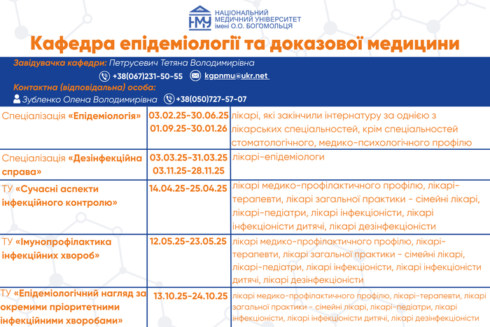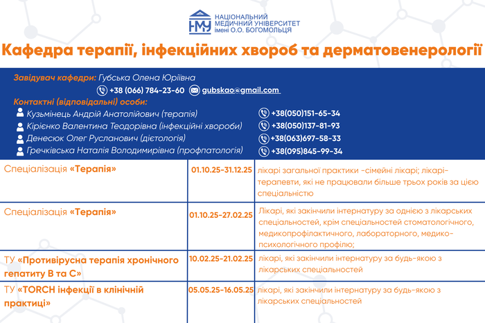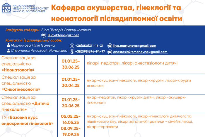Наказ МОЗ України від 25 липня 2023р № 1347 «Про затвердження Переліку циклів спеціалізації та тематичного удосконалення за лікарськими та фармацевтичними (провізорськими) спеціальностями»: https://zakon.rada.gov.ua/laws/show/z1362-23#Text